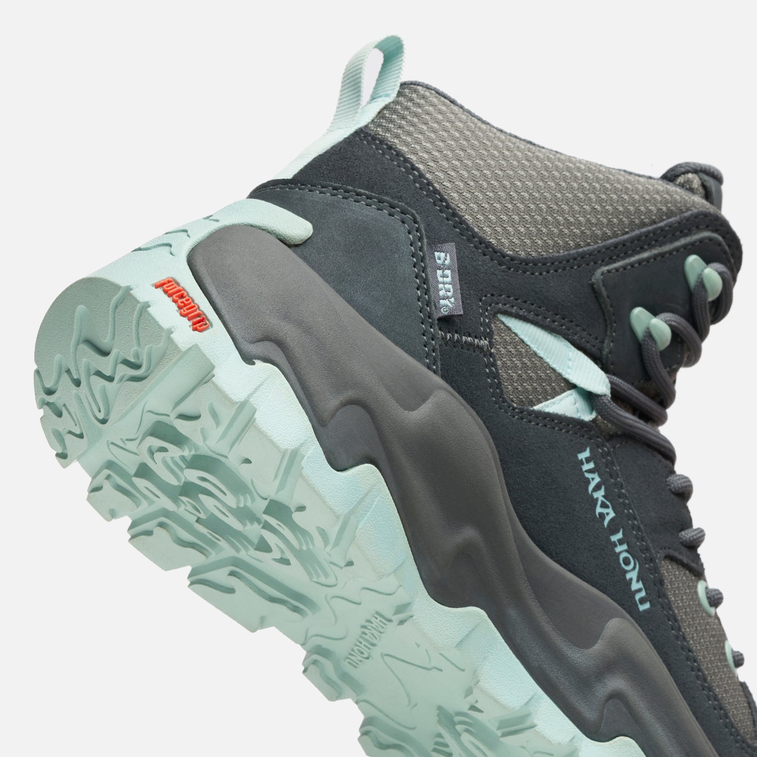 Botín Hiking. Capellada textil, Cuero Cow suede y Nubuck. Forro membrana B-Dry impermeable y poliéster. Suela Forcegrip antideslizante. Entresuela de EVA. Plantilla Ortholite de espuma antibacterial. Peso: 558 gramos