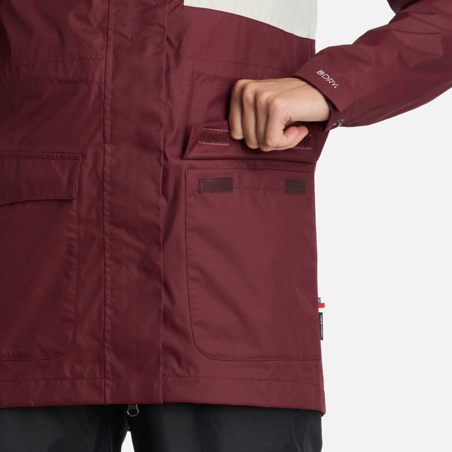 Chaqueta B Dry impermeable 2 capas con forro con diseño y malla, Impermeable, respirable B-Dry, Gorro y basta con ajuste en sistema de tankas, Puño ajustable con velcro, Cierre principal YKK, Todas las costuras termoselladas.