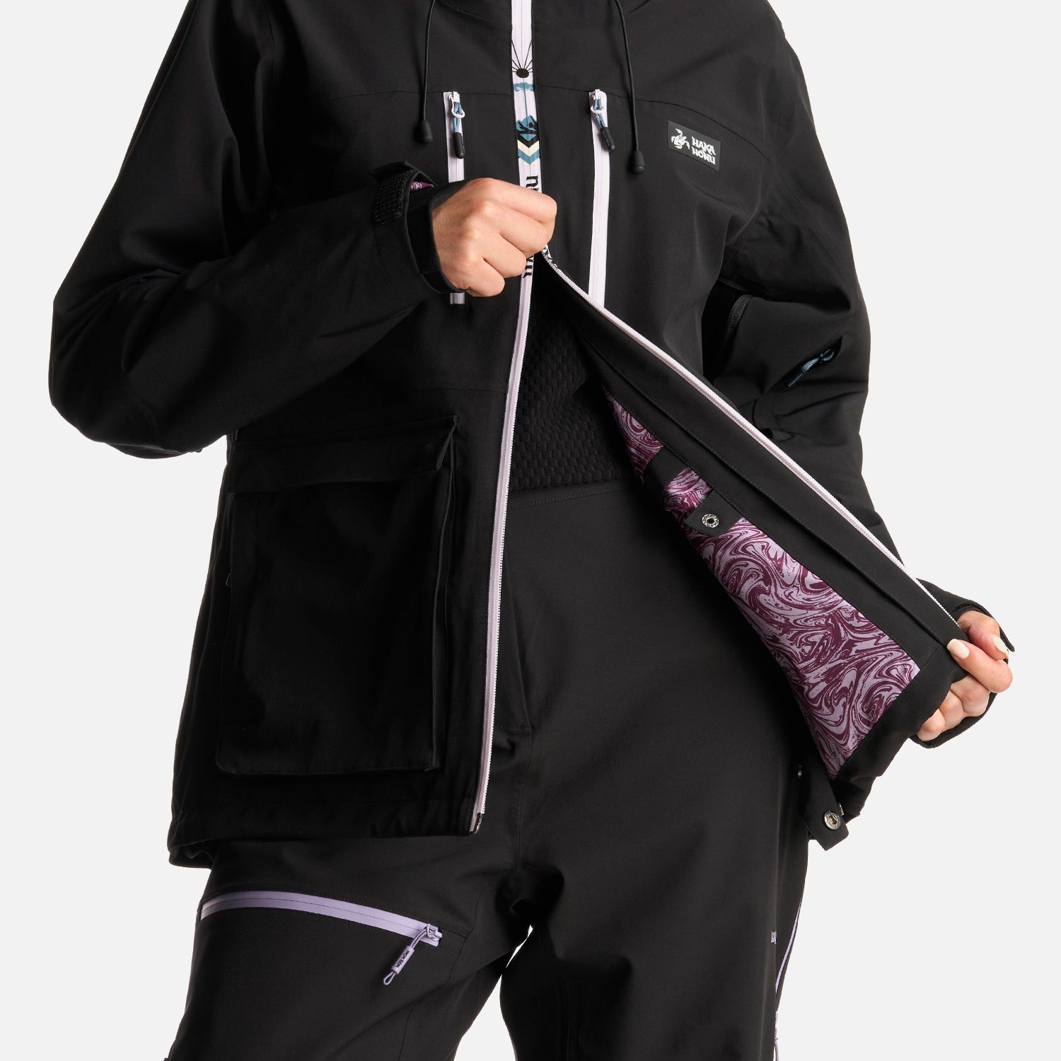 Viento blanco es nuestra nueva chaqueta para la nieve. Impermeable, liviana y cómoda para usar en la montaña y en todos los deportes outdoor invernales. Está hecha de poliéster reciclado y tiene unos detalles en sus prints que la hacen única.