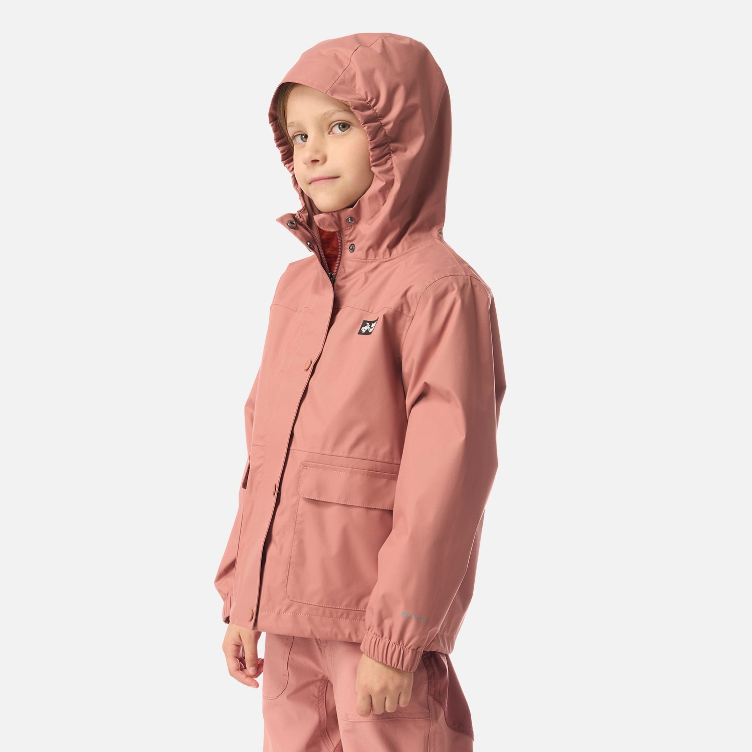 - Chaqueta impermeable 2 capas. - Producto Sustentable. - Membrana 10.000 / 10.000. - Cierre principal YKK. - Gorro con elastico en apertura para mejor calce. - Ajuste en basta con tankas. - Puño con elástico interior. - Gráficas: Logos estampados. - Tela interior: Forro en gorro y manga, y tela malla en cuerpo. - Tapeta con broches a la vista. - Bolsillos parche. - Calce regular.