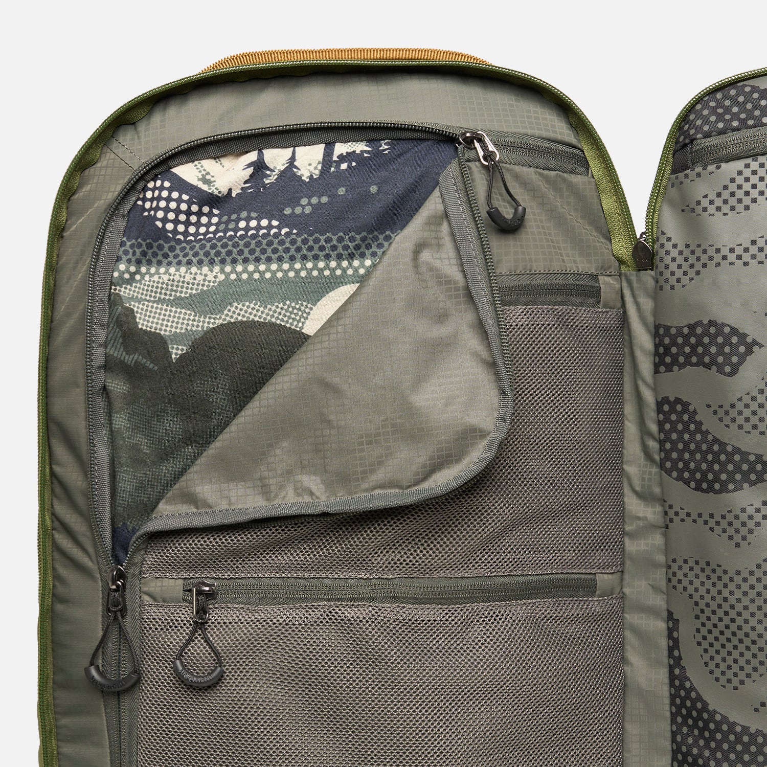 Compartimento principal de acceso con cremallera en U con panel divisor de malla con cremallera para un embalaje organizado.Amplio compartimento principal que se abre completo . Cuenta con dos compartimientos interiores de cremallera en U , uno con tratamiento POLYGIENE antiolores y el otro de forro normal con bolsillos de malla organizadores. Compartimento trasero acolchado para computador de 15´´ y bolsillos organizadores. El panel trasero cuenta con un pasador de asa para maleta para sujetarlo de forma segura durante el transporte. El bolsillo frontal, bolsillo superior y bolsillo trasero cuentan con un loop de seguridad para enganchar un candado y puedas guardar las cosas de más valor. El bolsillo superior con forro acolchado y suave al tacto para proteger artículos como lentes. Bolsillo lateral de malla elástica para guardar rápidamente la botella de agua. Tirantes de hombros acolchados con hebilla de correo de esternon