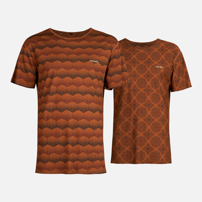 - Polera de algodon reversible - Manga corta - Cuello redondo - Full Print por ambos lados - Basta recta - Fit regular - Tratamiento Anti- pilling - Certificación GOTS